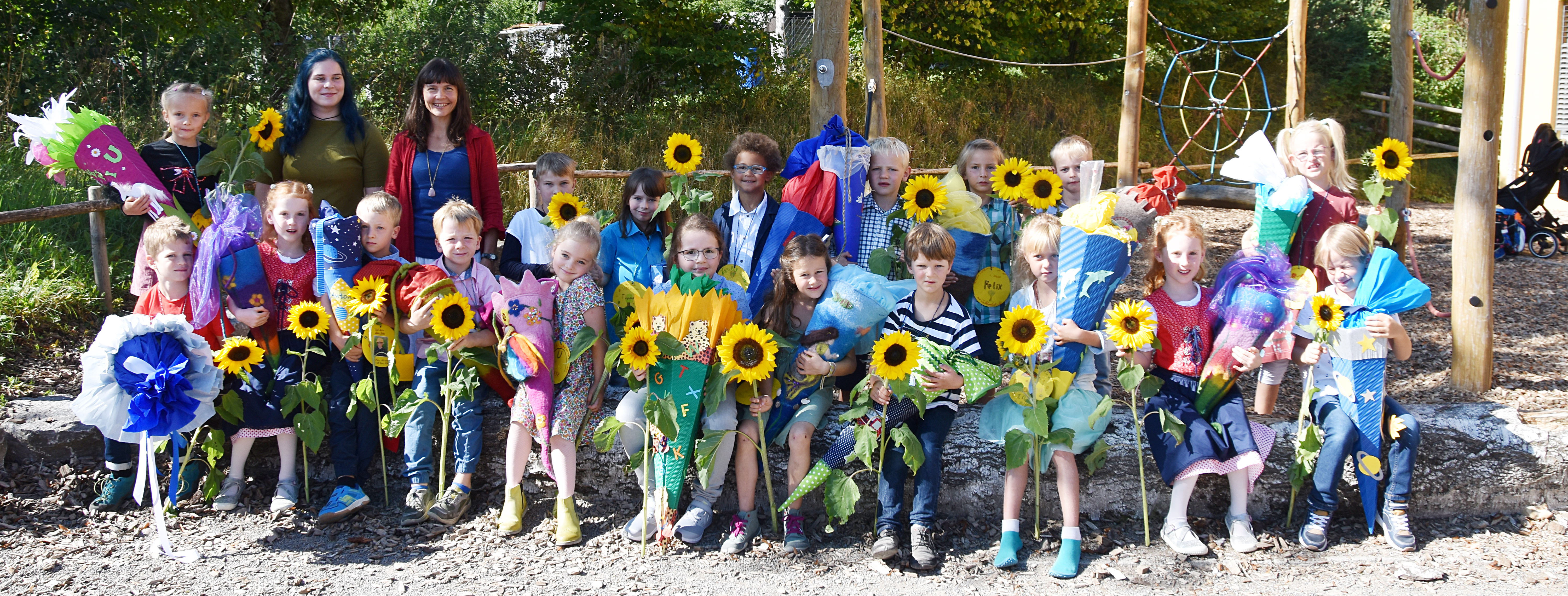 Erstklässler der Waldorfschule strahlen mit der Sonne um die Wette Sonnenblumen säumten den Weg als die neuen Erstklässler der Waldorfschule zur...